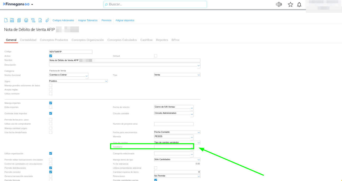 Verifique el campo Subdiario. Si se encuentra vacío, asigne el subdiario correspondiente para que el sistema pueda procesar la información en el reporte.