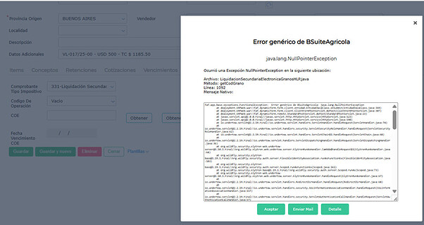 Al intentar realizar una liquidación secundaria de venta de granos, es posible que el sistema arroje un error. Este problema generalmente se debe a dos factores clave que deben ser verificados y corregidos: