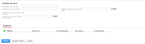 - El campo de Cantidad de stock 2 se mostrará sólo si el producto tiene configurada una unidad de stock secundaria. Si no, se verá sólo la Cantidad de stock 1.