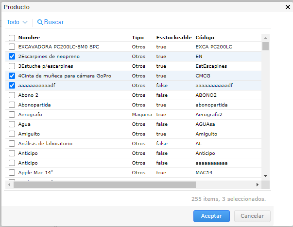 Activo: cuando este check está activo sólo trae productos Activos (En el Maestro de productos), si se desactiva el check trae todos los productos