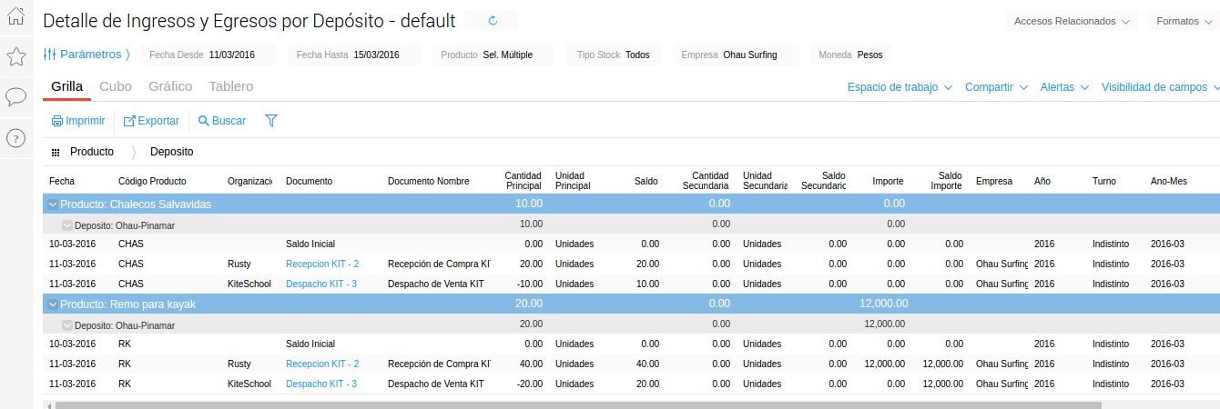 Como se puede observar, solo se ve el ingreso y egreso de los productos que componen el kit.