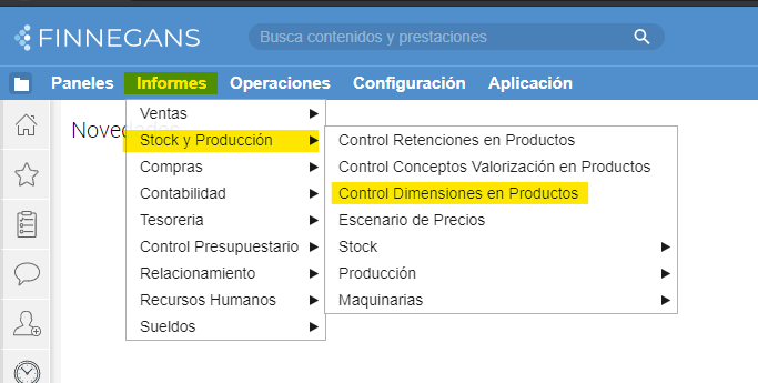 Dimensión: se selecciona la dimensión por las cuales filtraremos el informe . Si se deja vacío el parámetro, se pueden visualizar todos los productos y sus respectivas dimensiones y en el caso que haya un producto sin dimensiones también se visualiza el mismo