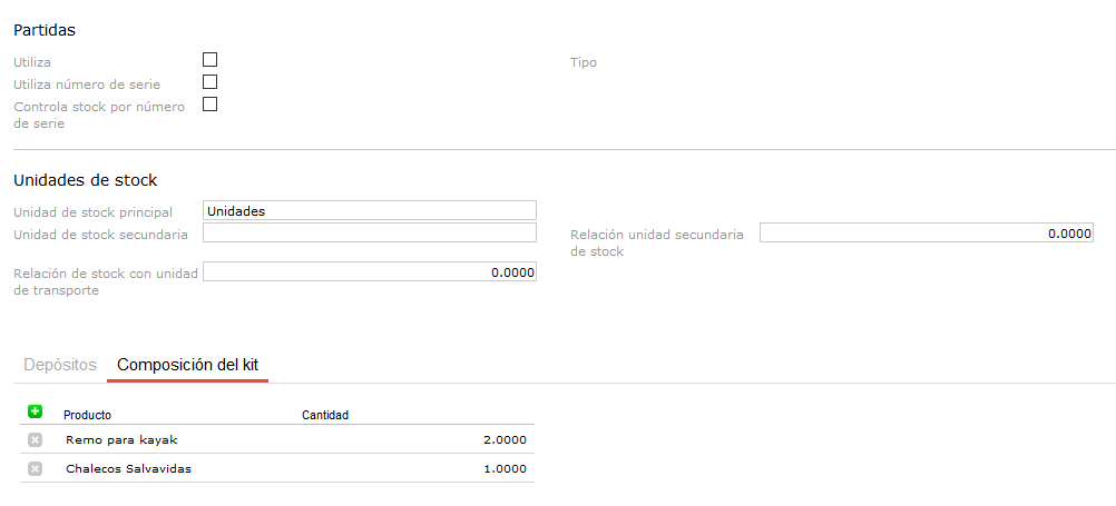 Es kit: habilita la solapa Composición del kit, donde se pueden ingresar los productos y cantidades que integran dicho kit. Para más información, dirigirse al final de la página.