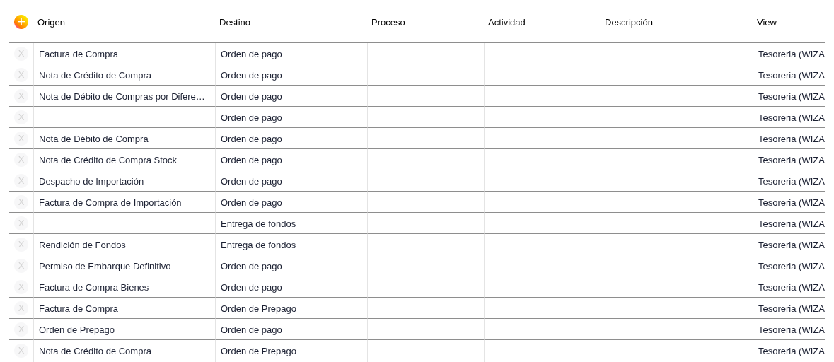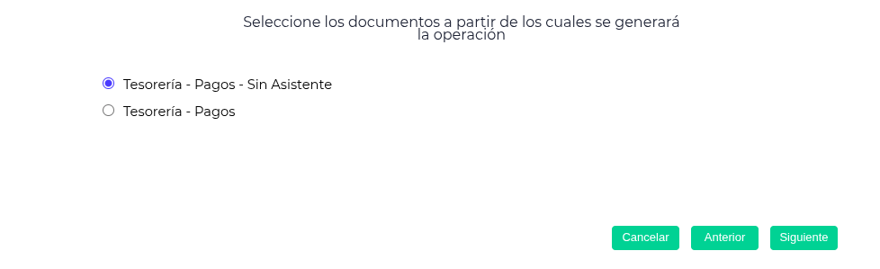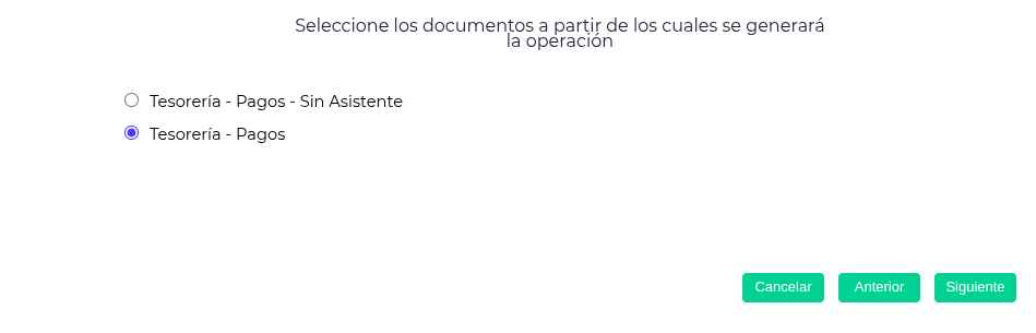 - Tesorería: al seleccionar esta opción, se podrán indicar tipos de documentos de tipo “Operación”, “Asiento genérico” y “Operación de tesorería” en el campo “Origen” del workflow y solo se podrán indicar tipos de documentos del tipo “Operación de tesorería” en el campo “Destino” del workflow.