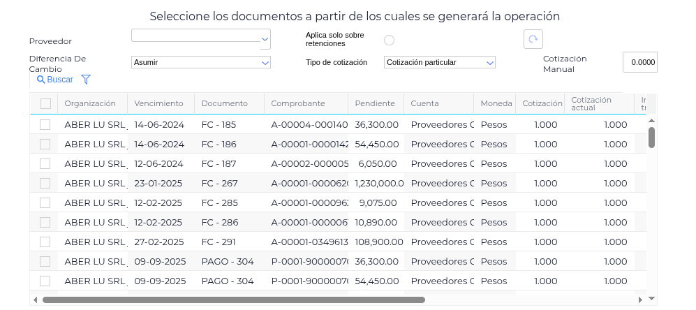 - Manual: El usuario podrá elegir en el momento de la carga del documento, si desea heredar la cotización del documento origen. El check “Hereda cotización origen” se mostrará destildado por defecto, pero será editable.