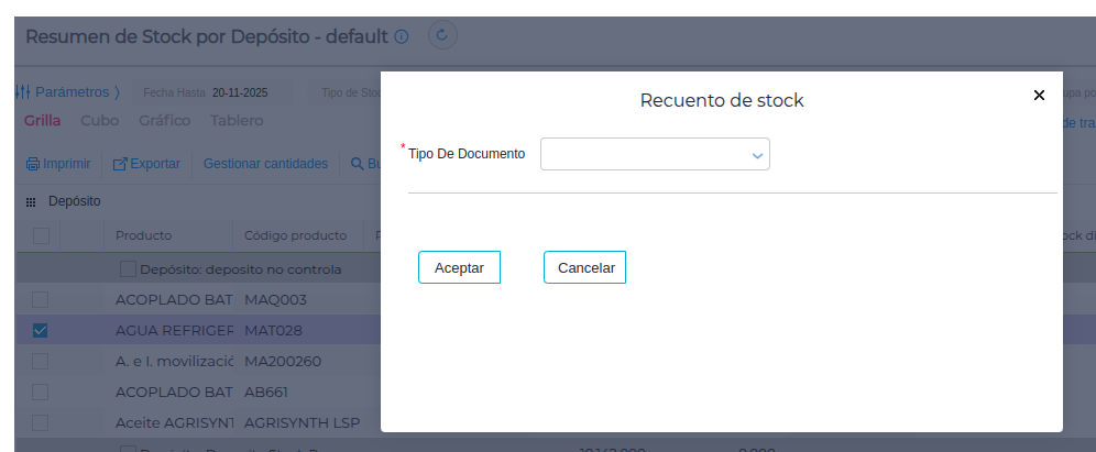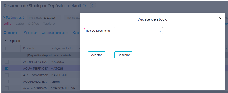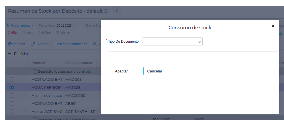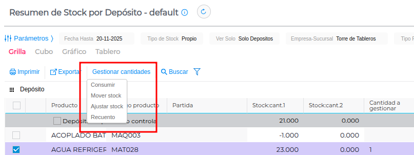 Esta mejora permite agilizar la gestión operativa del stock directamente desde el informe Resumen de Stock por Depósito, evitando que los usuarios deban salir del informe para realizar consumos, movimientos, recuentos o ajustes.
