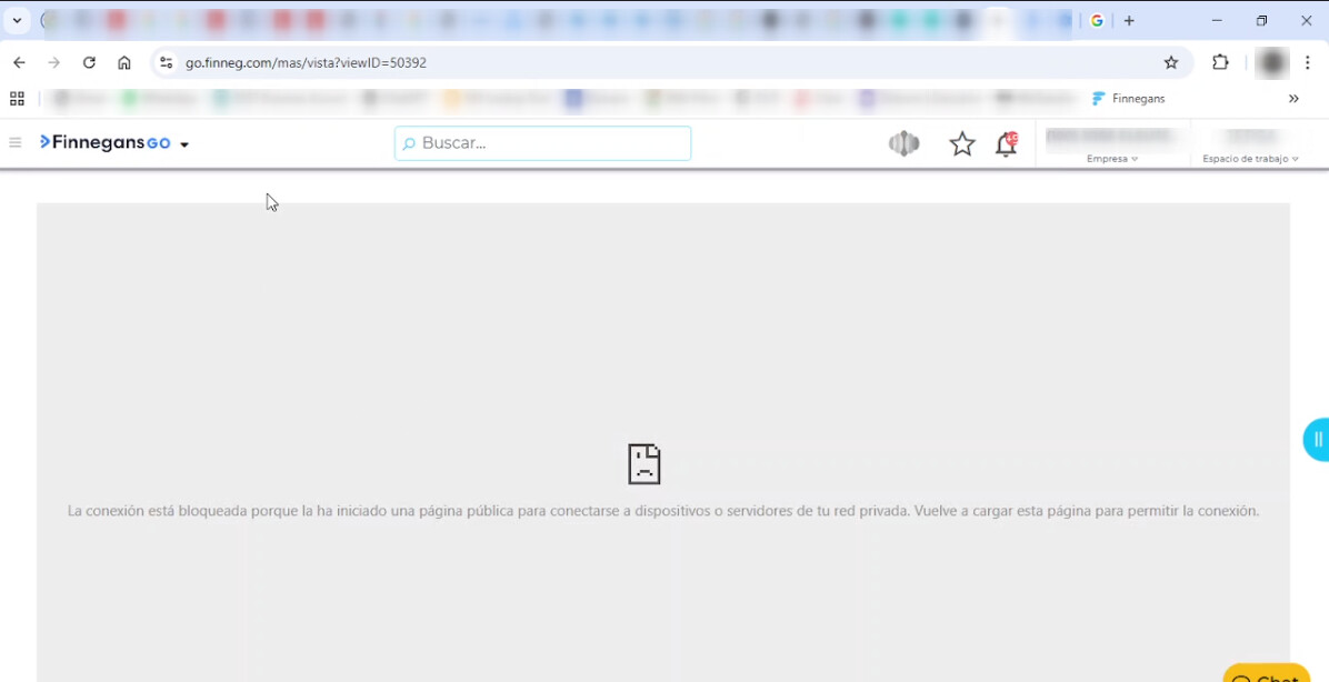 Al ingresar a cualquier vista figura el siguiente mensaje que impide visualizar el contenido.