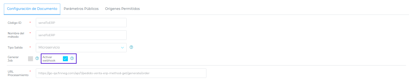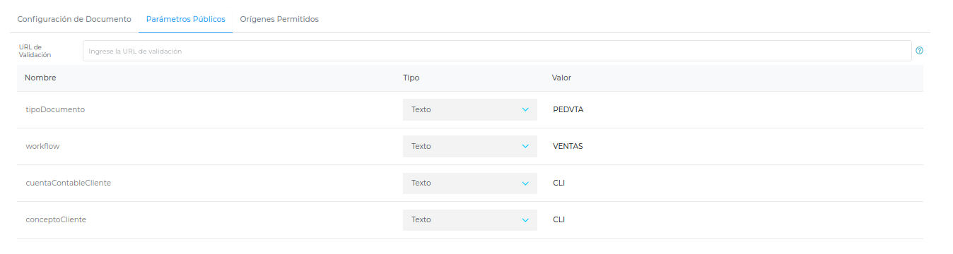 TipoDocumento: Configura el tipo de documento para enviar al ERP
