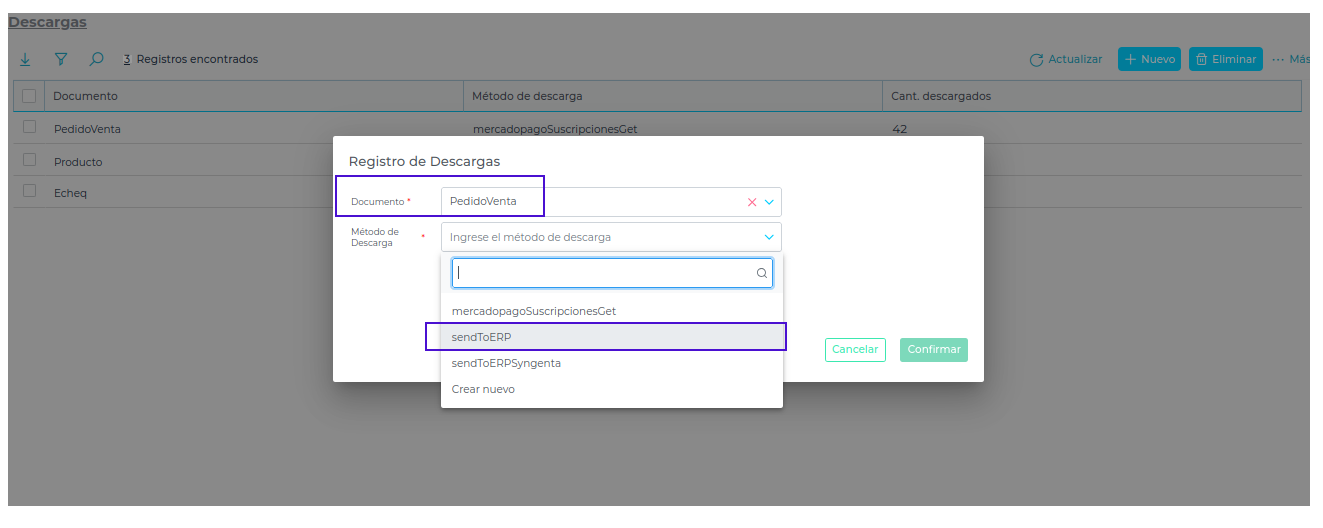 3. Configuración del Método SendToErp