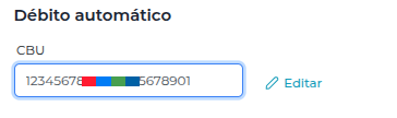 Es posible ingresar o modificar el CBU utilizado para los débitos automáticos.