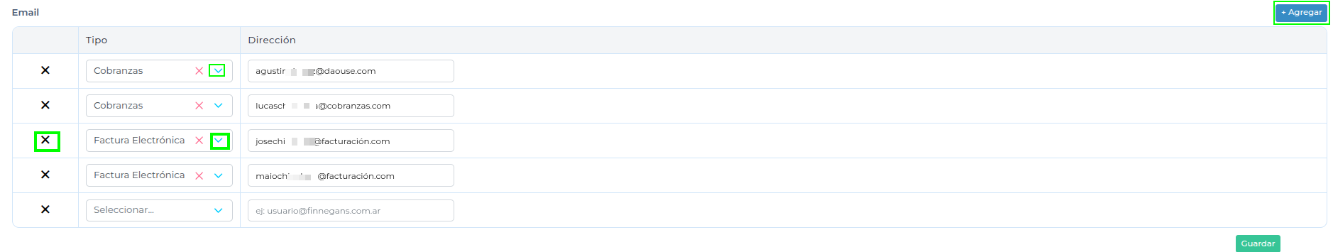 - Factura Electrónica: Direcciones que recibirán los comprobantes fiscales.