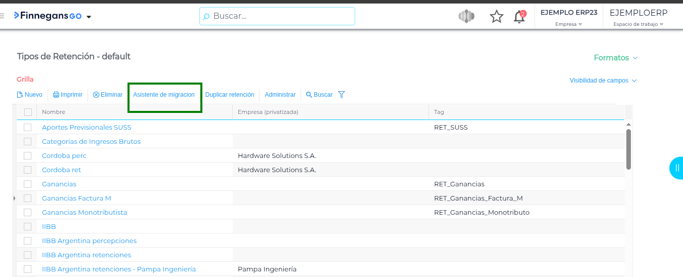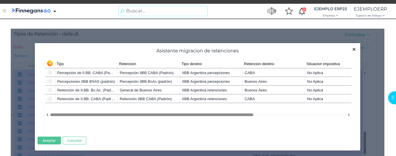 | 1 | Selección | Tilda todos los tipos de retención antiguos de IIBB a migrar. |