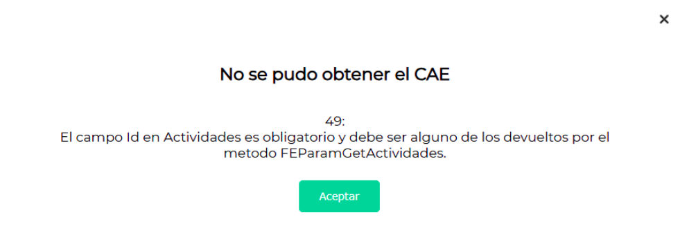 Al intentar obtener CAE, sale el siguiente mensaje: