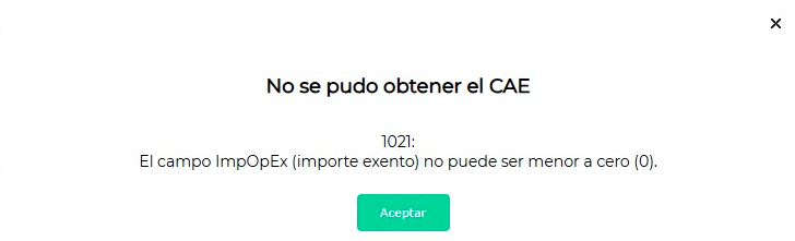 Al intentar obtener CAE de una Factura de Venta sale este mensaje: