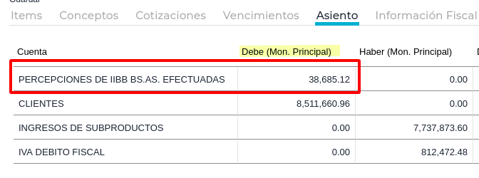El mensaje se debe a que la Factura de Venta posee una percepción que está impactando incorrectamente en el Debe. Deberían impactar en el Haber.