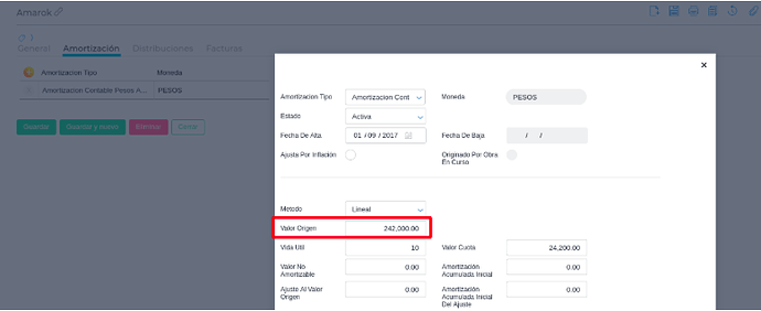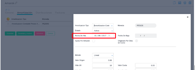 Maestro de Bienes de Uso - Pestaña Amortización