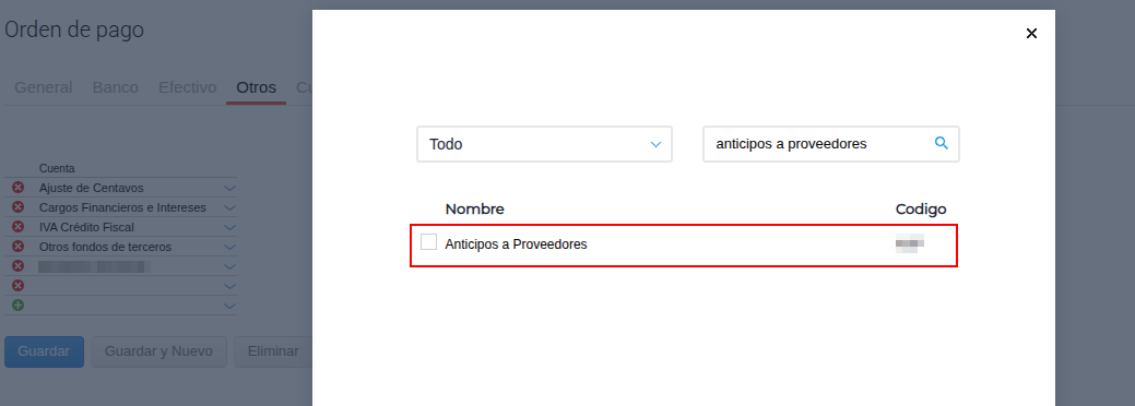 ¿Cómo agregar una cuenta contable para que aparezca en el selector de la solapa Otros en las Órdenes de Pago?