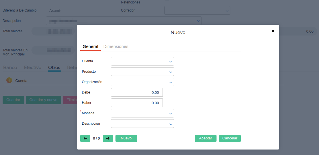- En la solapa Otros, presionar ‘+’ para agregar una nueva línea.