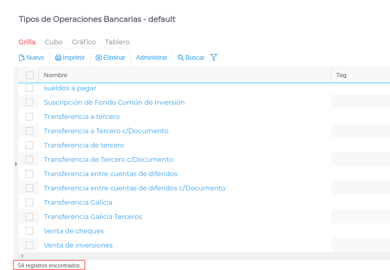 - Acceda a la configuración de los Tipos de Operación Bancaria en el sistema.