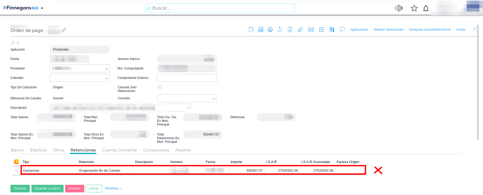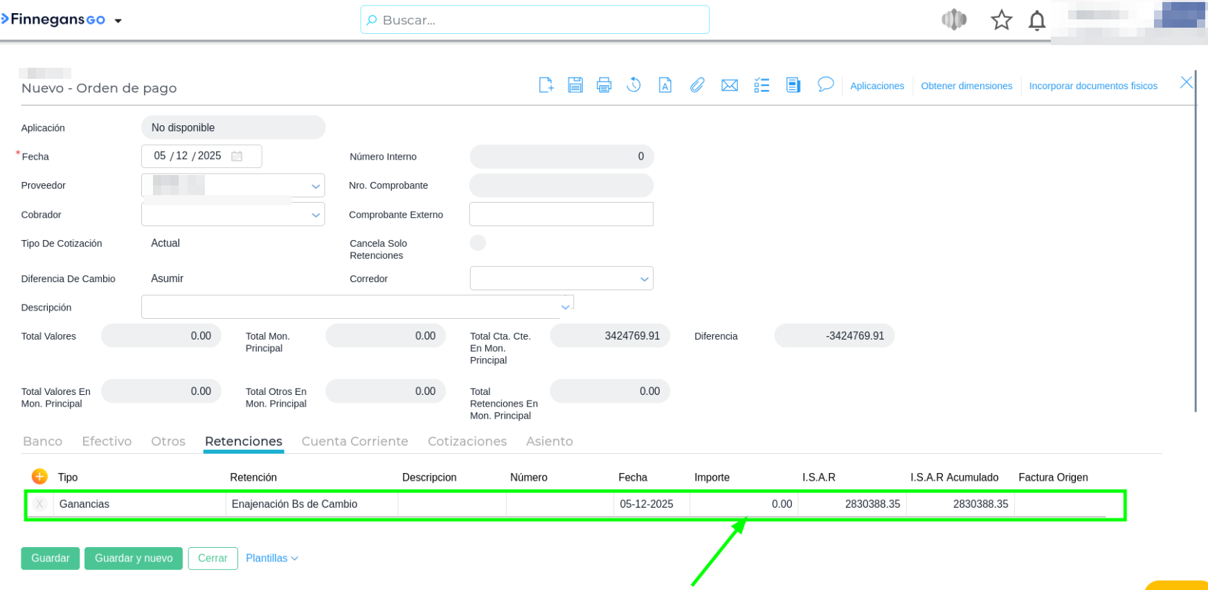 Guardar los cambios en el proveedor y volver a generar la Orden de Pago para que el sistema tome la nueva configuración.