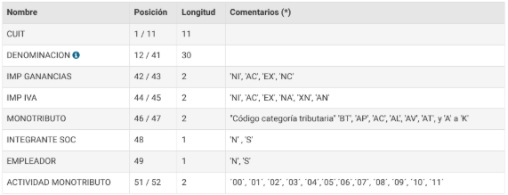 (Consultar padrones impositivos por Cliente/Proveedor)