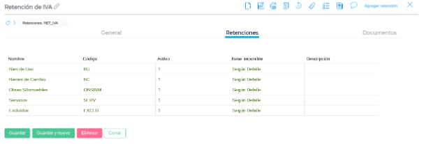 Se ingresa a la Retención de IVA y se presiona el botón Agregar Retención.