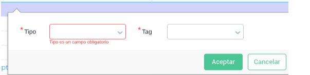 En Tipo se selecciona la opción Tipo y en Tag se selecciona la opción correspondiente.