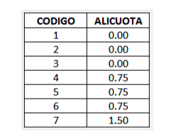 El sistema toma esta clasificación numérica (que va del 1 al 7) y le pega la alícuota correspondiente a esa categoría, de acuerdo al siguiente cuadro (vigente desde 01/02/2019):