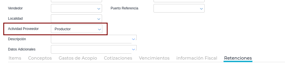 Debe agregarse el tipo de retención/percepción correspondiente, seleccionando “Ambos” en el campo “Momento de aplicación”, para que de esta manera pueda ser utilizado en Liquidaciones de Granos: