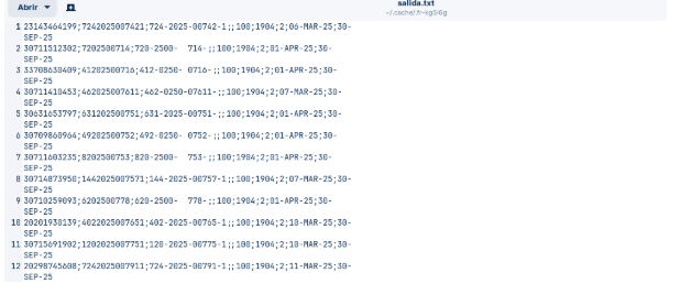 - Prevención de Duplicación de Períodos: Si ya existe un registro para un CUIT con la misma vigencia del mes actual (ejemplo: $01/10/2025$ al $31/10/2025$), el proceso omite la creación de un nuevo registro. En ningún caso duplica períodos.