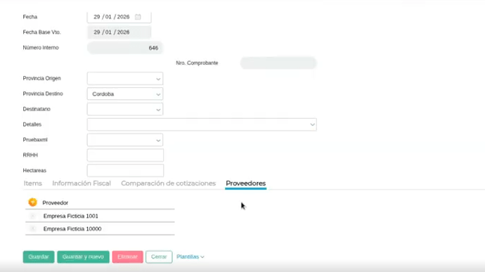 - Autocompletado Inteligente: Al generar el documento, la solapa “Proveedores” se completará automáticamente siguiendo estas reglas: