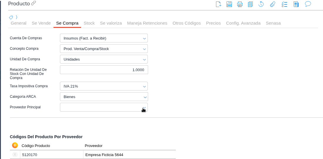 - Por Configuración : Incluye al “Proveedor Principal” definido en la ficha del producto y a los proveedores asociados en la sección “Código del Producto por Proveedor”.