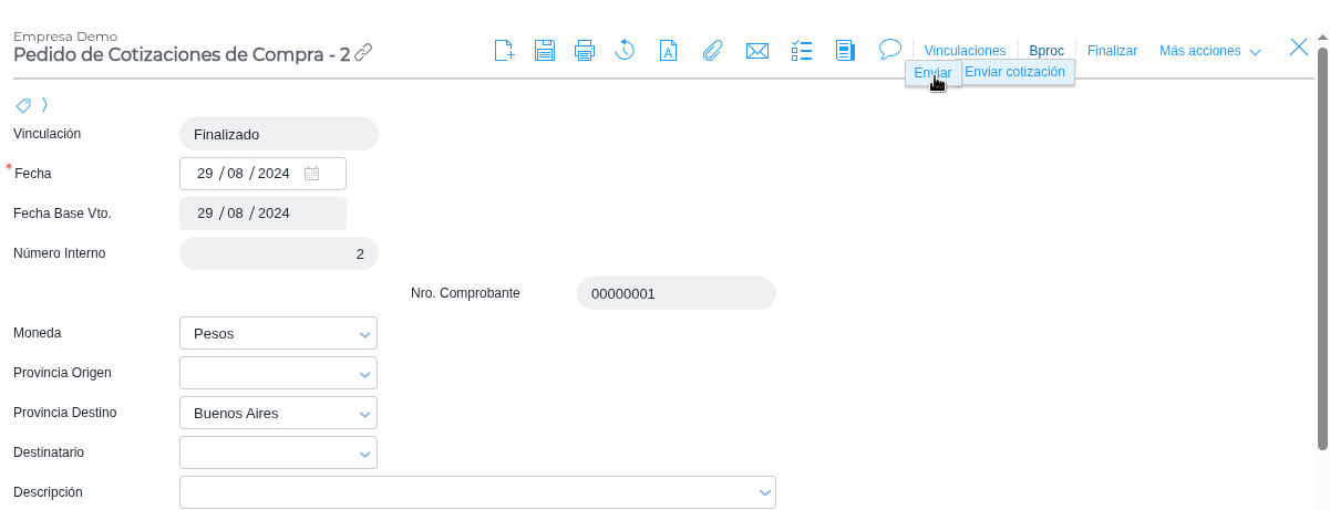 - Importante: Es fundamental no confundir el “Pedido de cotización de compra” (donde aplica este funcionamiento) con el “Pedido de compra” estándar.
