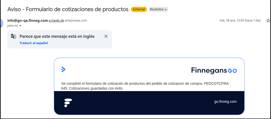 Confirmación : Al guardar, se dispara una notificación por email y la cotización se almacena automáticamente en el sistema vinculada al pedido original.
