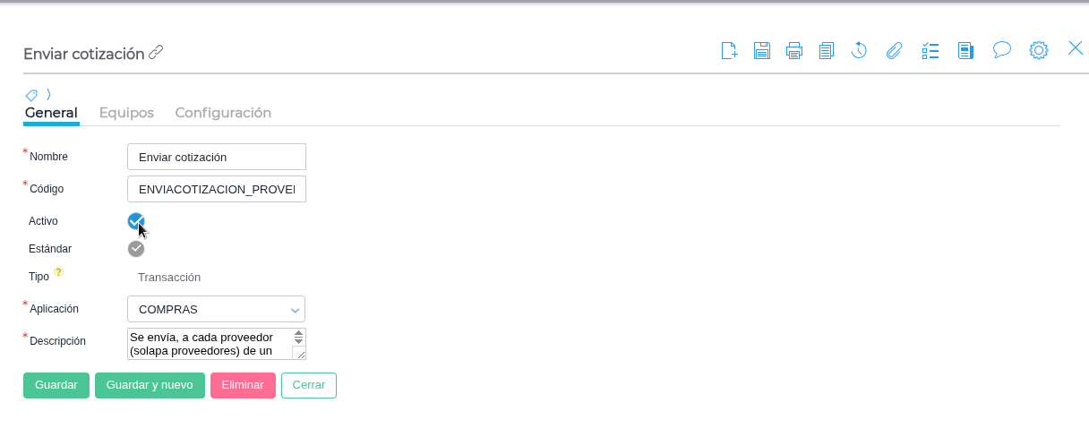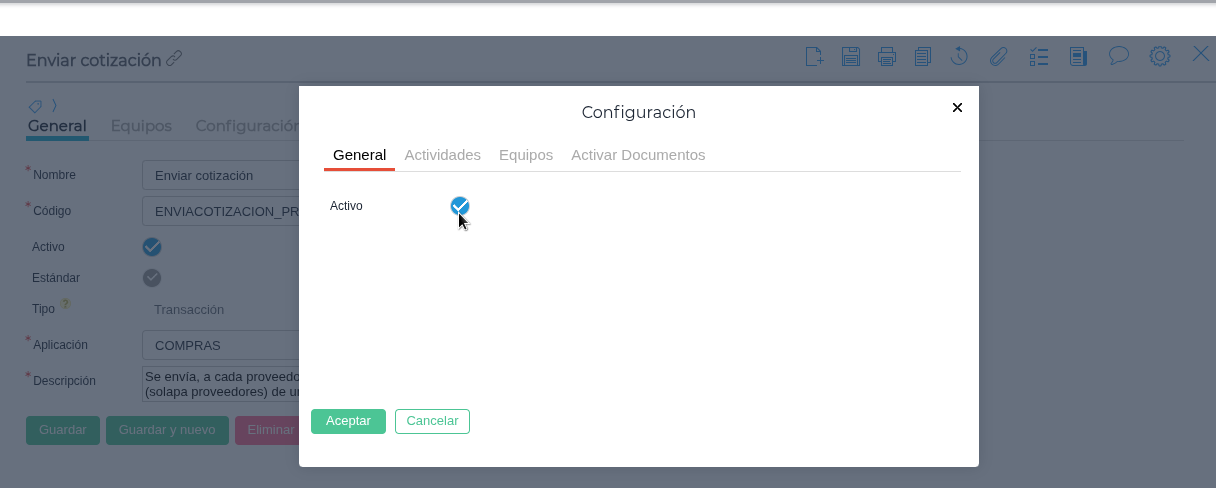 - Activación de Procesos: Se debe activar el Bproc de “Enviar cotización”