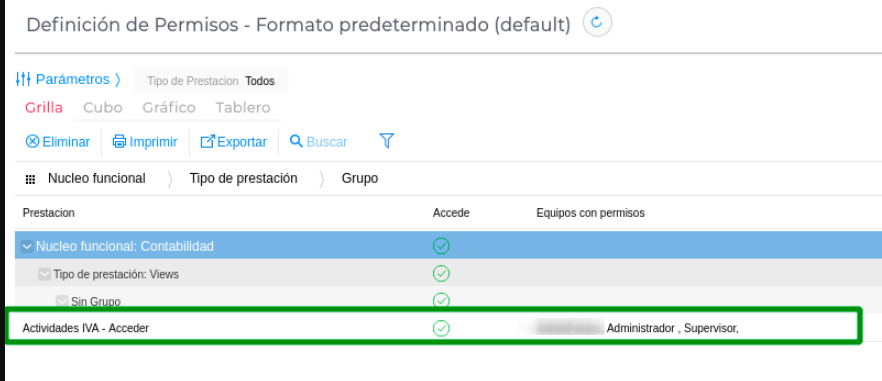 Ruta: Menú - Configuración - Seguridad - Definición de Permisos -