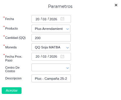Esto desplegará un pop-up con parámetros a completar: