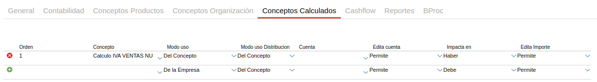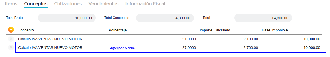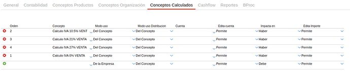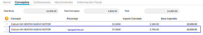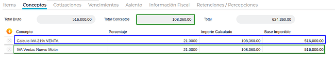 - Se crea un concepto único (ej. “IVA Ventas Nuevo Motor”) con el parámetro de calcular vacío.