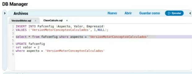 - En el motor nuevo, la clase de cálculo tradicional (ej.