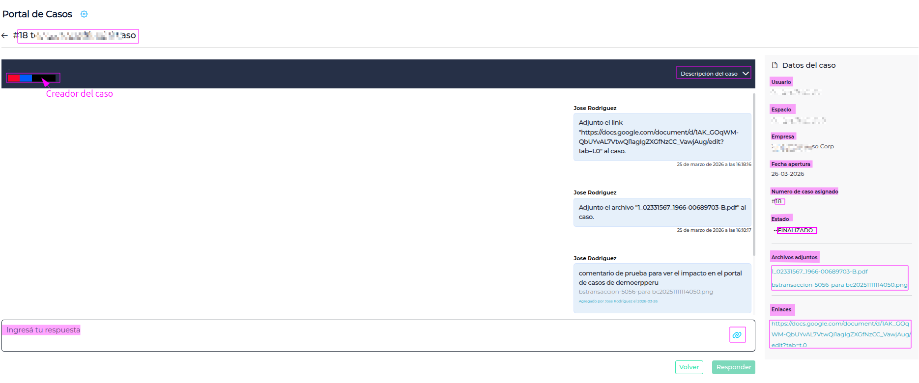 Una vez creado el caso, la comunicación se mantiene de la siguiente manera: