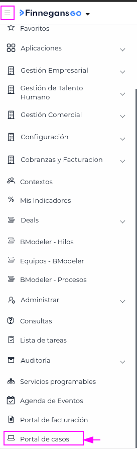Para acceder, se debe localizar en el menú principal la opción Portal de Casos.