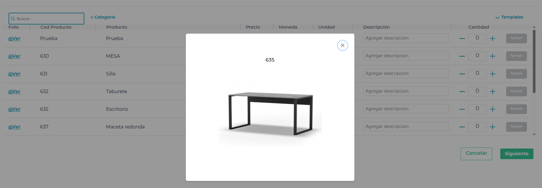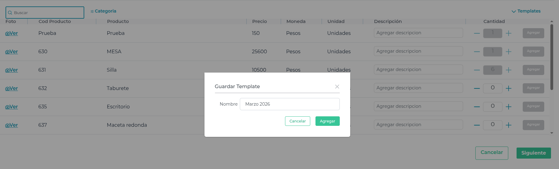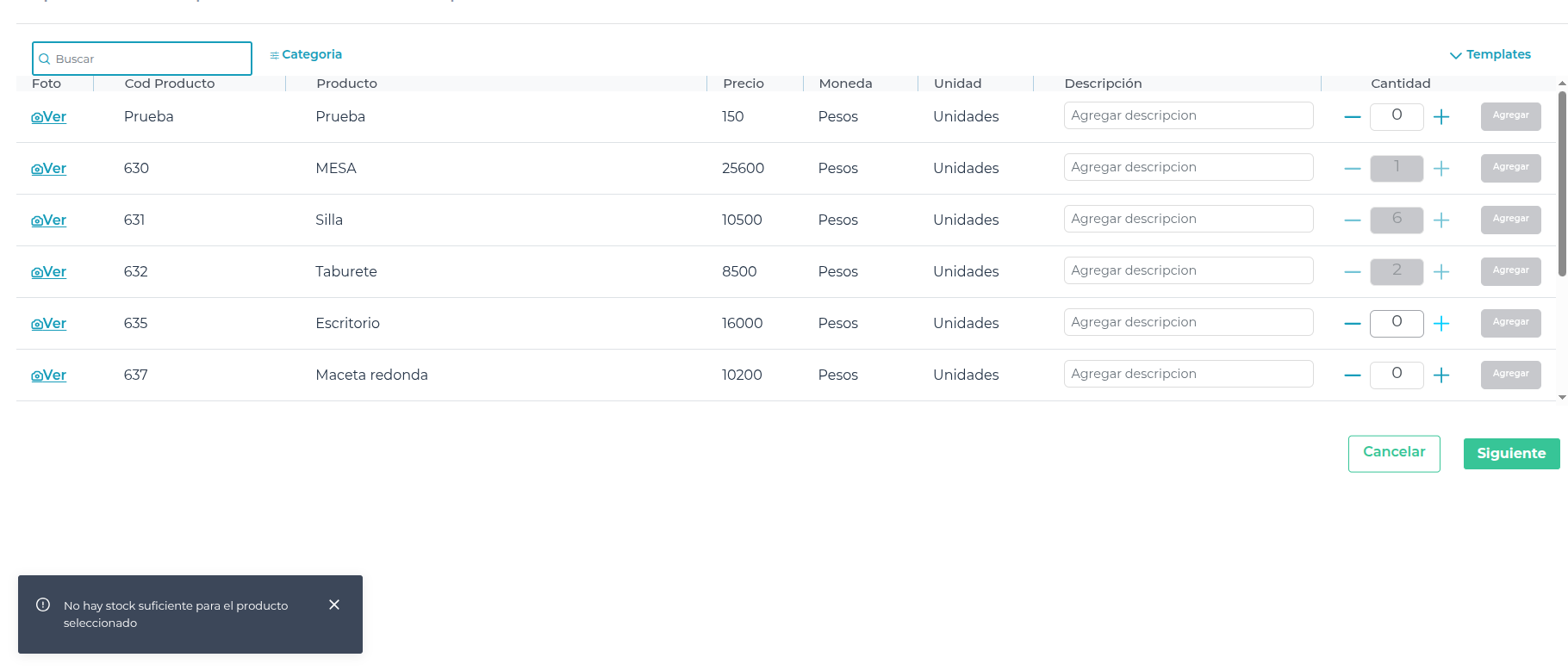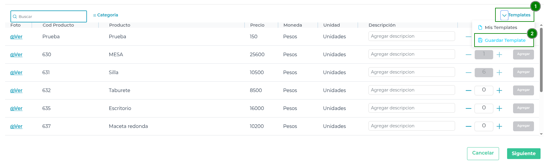 - Podrá cambiar la cantidad de productos que se requieren.