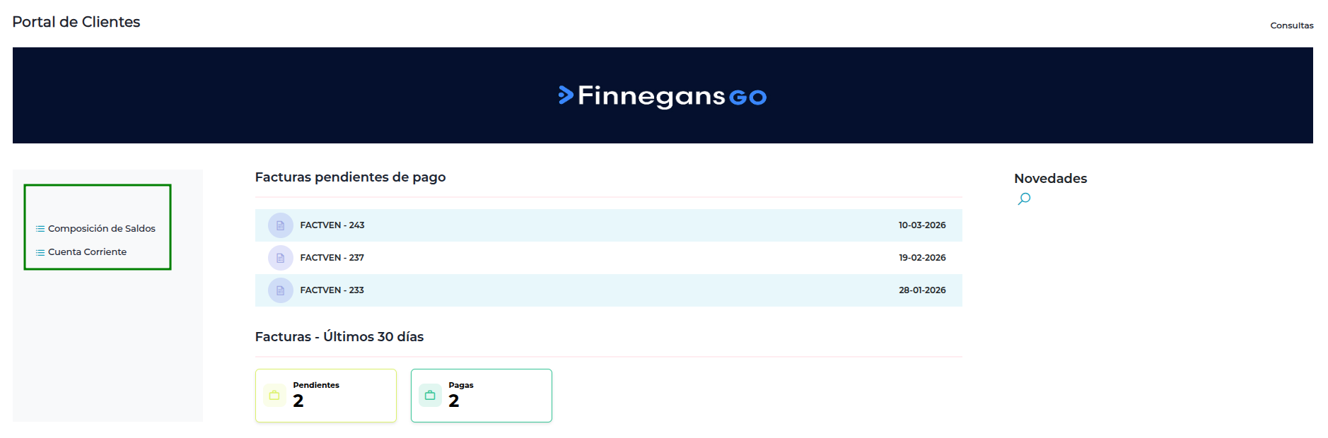 Podrá visualizar los comprobantes de venta que poseen saldos pendientes en la Cuenta Corriente, con información de Condición de pago y Fechas de Vencimiento.