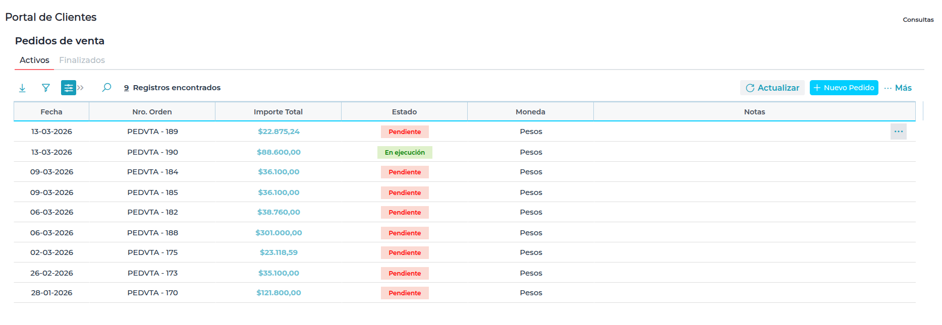Pedidos de Venta Activos