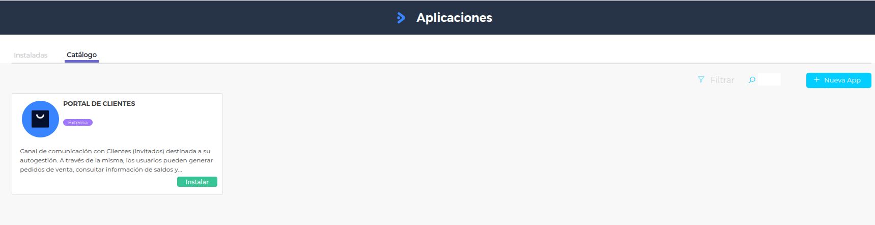Ingresar desde Menú → Administrar → Plug&Go → Catálogo → Portal de Clientes → Instalar