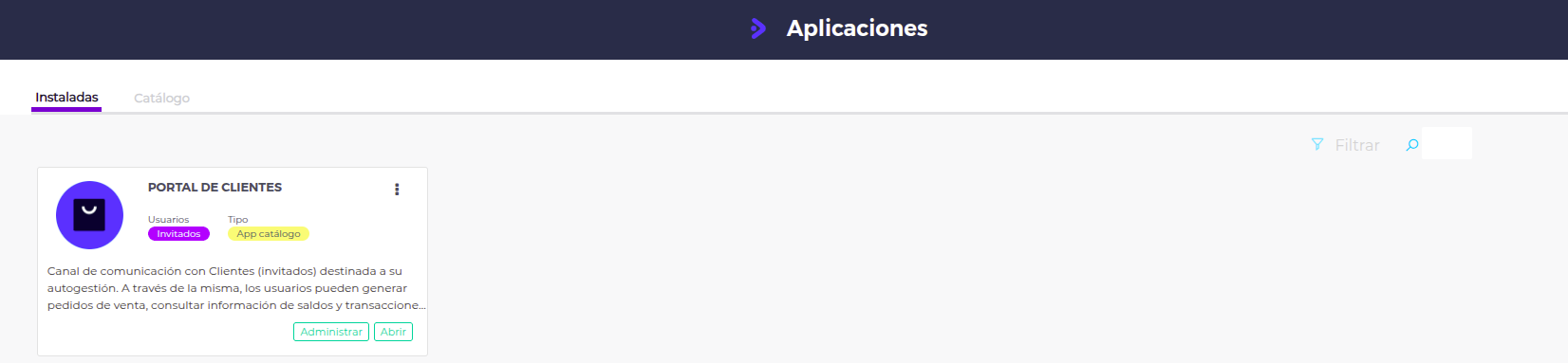 Presionando Menú podrá seleccionar “Portal de Clientes”, aplicación habilitada para el uso de Clientes en el Espacio de Trabajo.