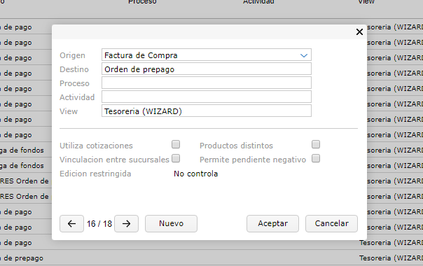 Deben añadirse en el workflow de pagos las siguientes relaciones entre documentos para que el proceso funcione de manera correcta.