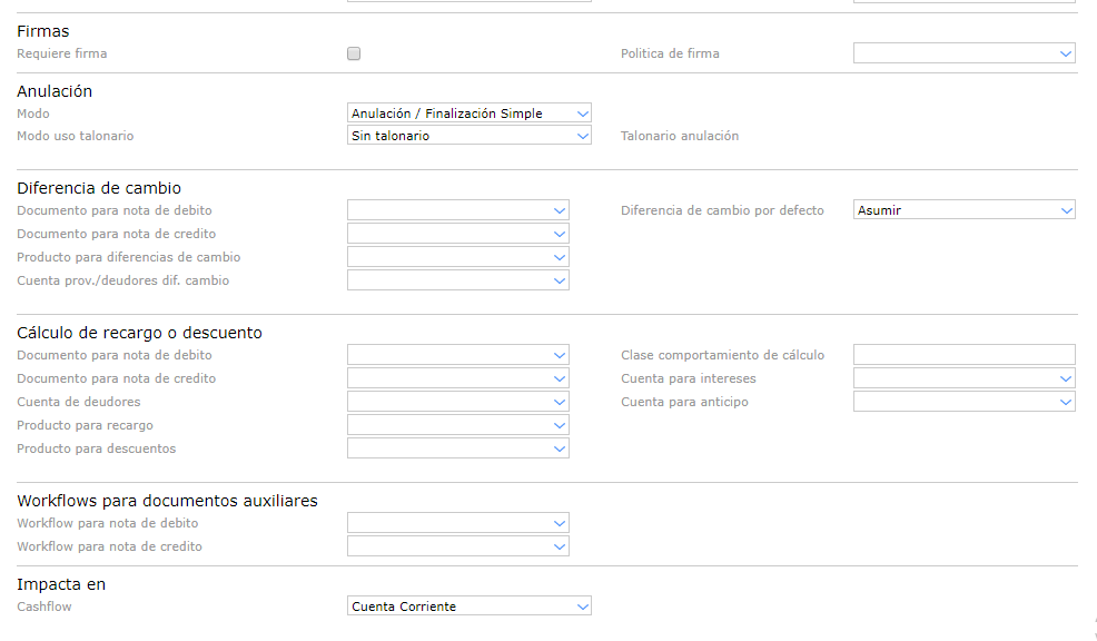 - Workflow: a partir del workflow que se seleccione aquí, el proceso sabe las relaciones que debe establecer entre los documentos.