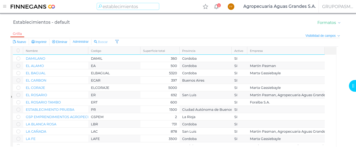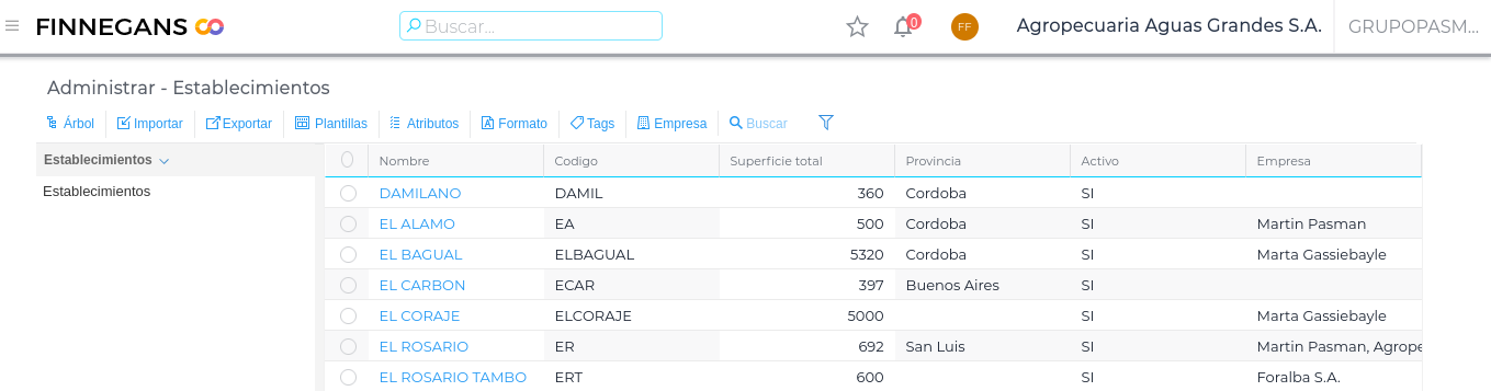 Dirigirse al maestro correspondiente, por ejemplo maestro de Establecimientos y hacer click sobre el botón Administrar