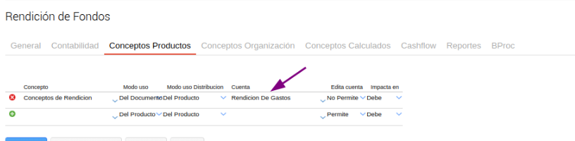 -Ir a la solapa “Conceptos productos” y verificar la cuenta en cuestión.
